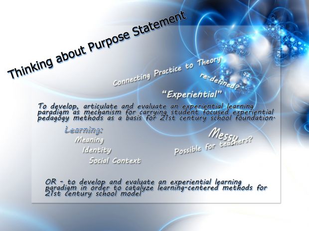 Over the past two years, my thinking around the direction my research should take has been re-defined numerous times.  While the particular focus of my research topic has changed, there exists a common thread throughout each iteration - a strong connection to developing knowledge which can be used to define and construct a paradigm to facilitate student-centered, experience-based pedagogical teaching mindsets.